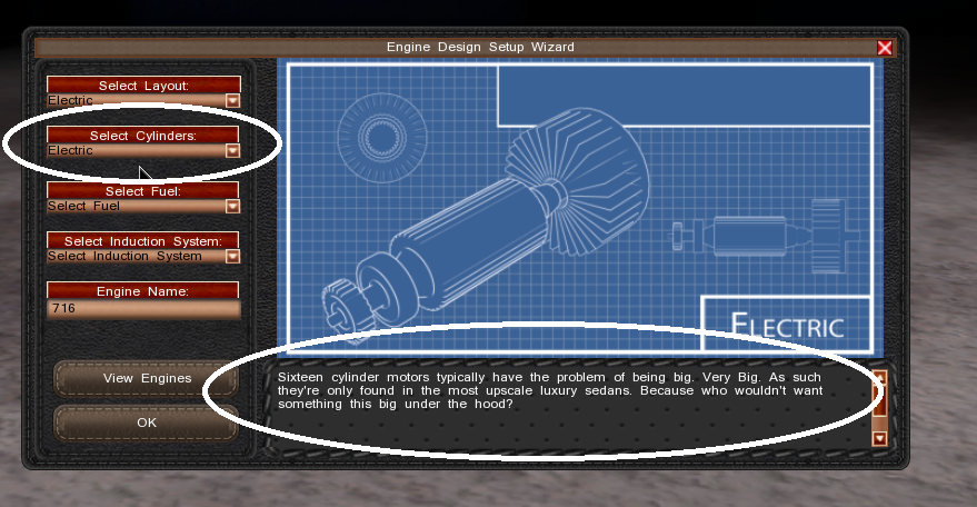 As you can see, when selecting an Electric Cylinder, you get a description for a 16 cylinder engine.