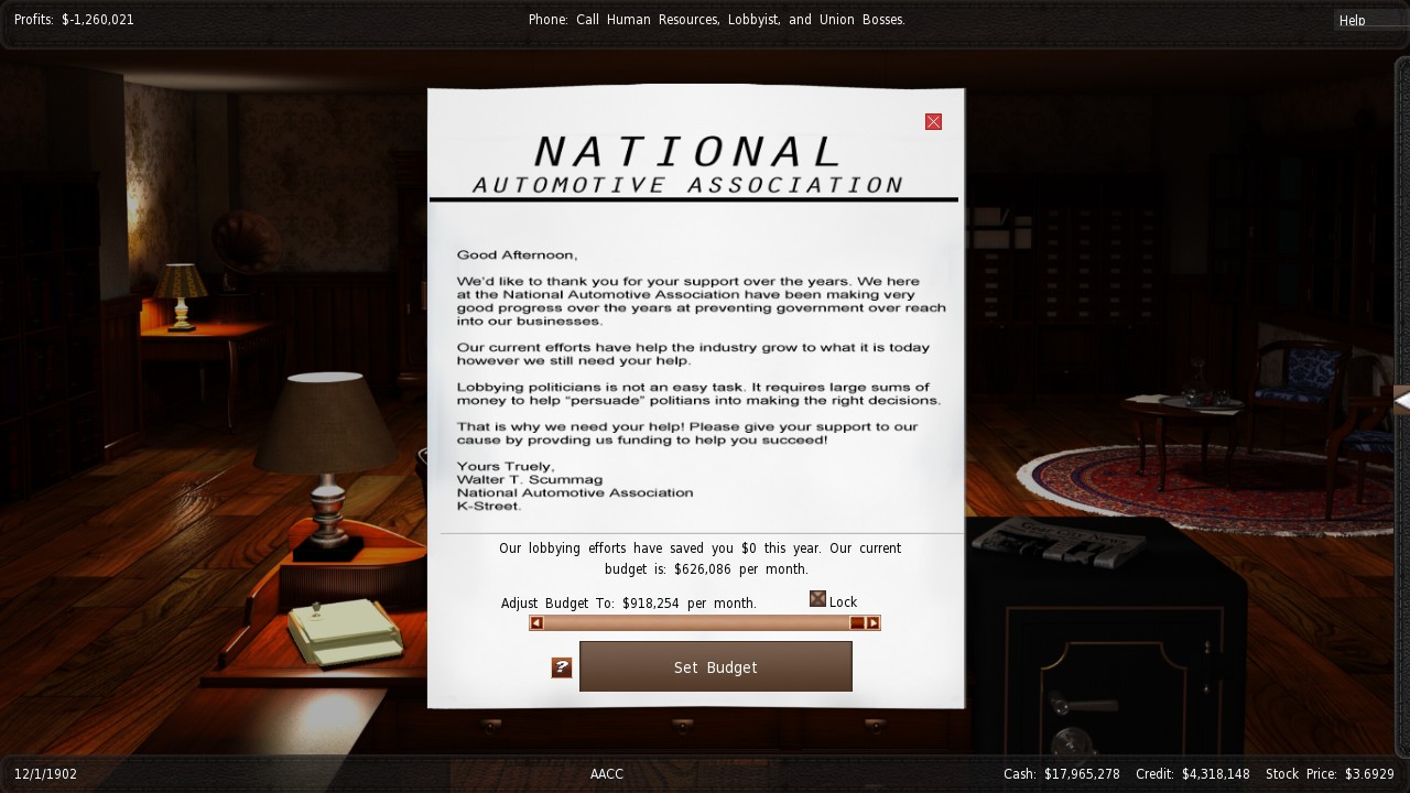 From the start to the end of 1902 the monthly cost is going up for every month. I think max slider start at about 40 k the first month then it just rises for every turn.