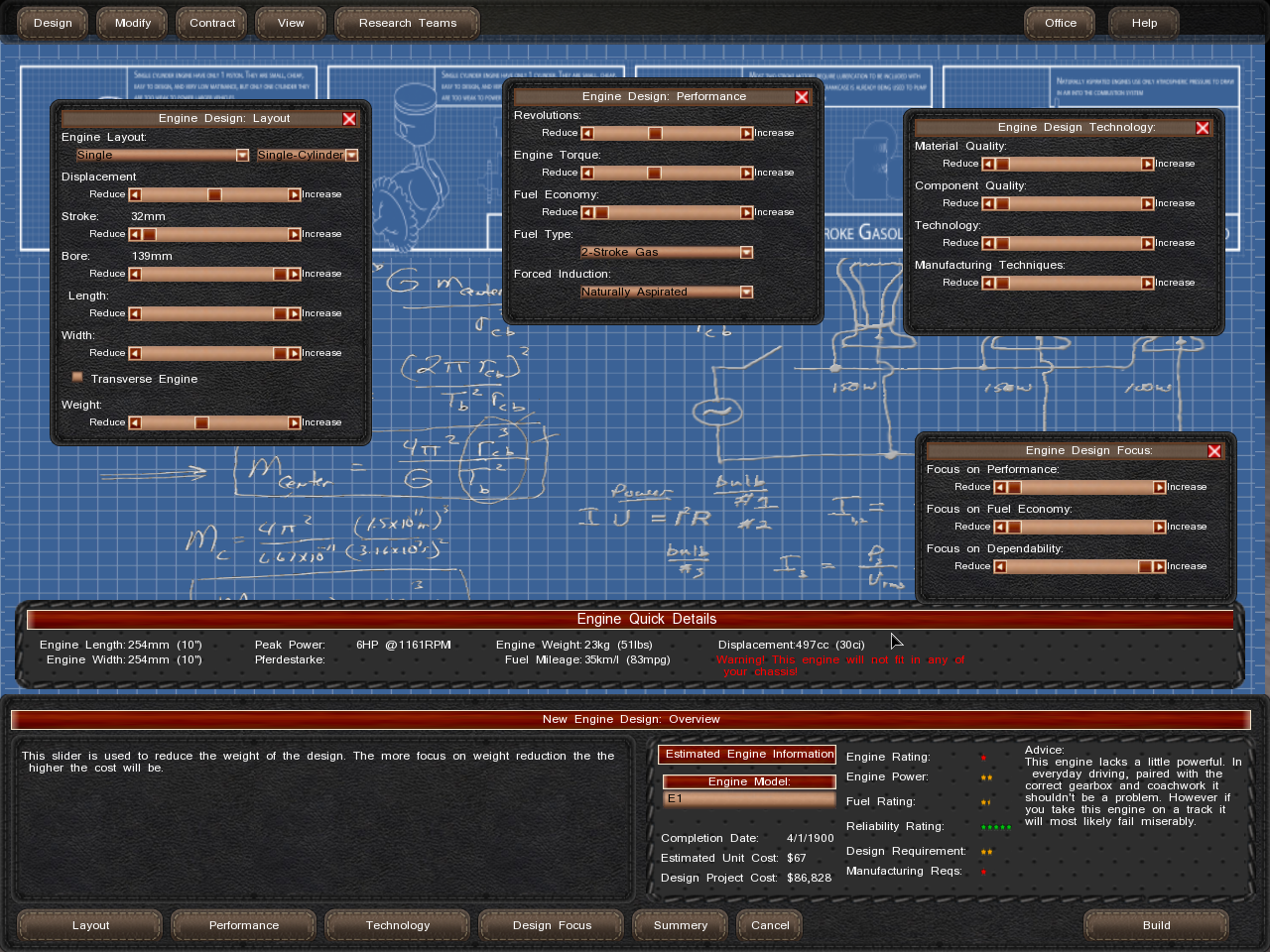 (04-03-2014, 12:10 AM)Eric.B Wrote: The fuel mileage you see on the engine design screen is idle amount of fuel burn (although not in hours as it should be) for that type of engine, it's only 1.5 stars. You should be able to get into the 150mpg range with a single cylinder. Tongue