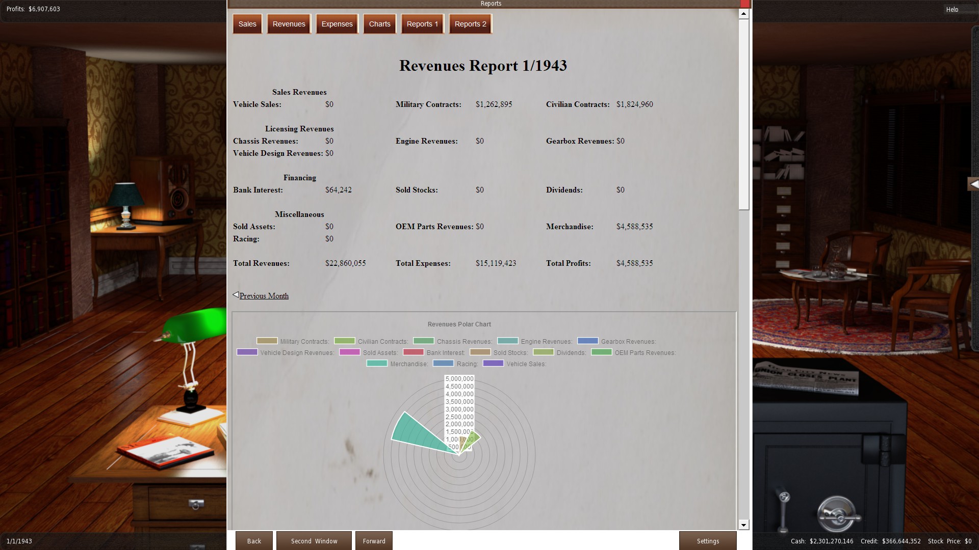 Haven't seen this happen to me before. Receiving revenues in the middle of WW2 when all my branches are closed and inventory is not reducing. Revenue is $22 million on paper, but actual revenue is closer to $8 Million for merchandise and some contracts. After the previously posted bug I uninstalled and reinstalled, deleting all the appcache as well. So this should be a clean game running.