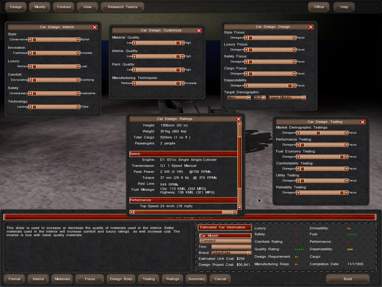 When i start to adjust the tech sliders like material quality, interior quality and paint quality at such low costs, they are really really cheap compared to their usual cost, which is extremely high in a lot of vehicles. More often then not they are the sliders i cant afford to increase.