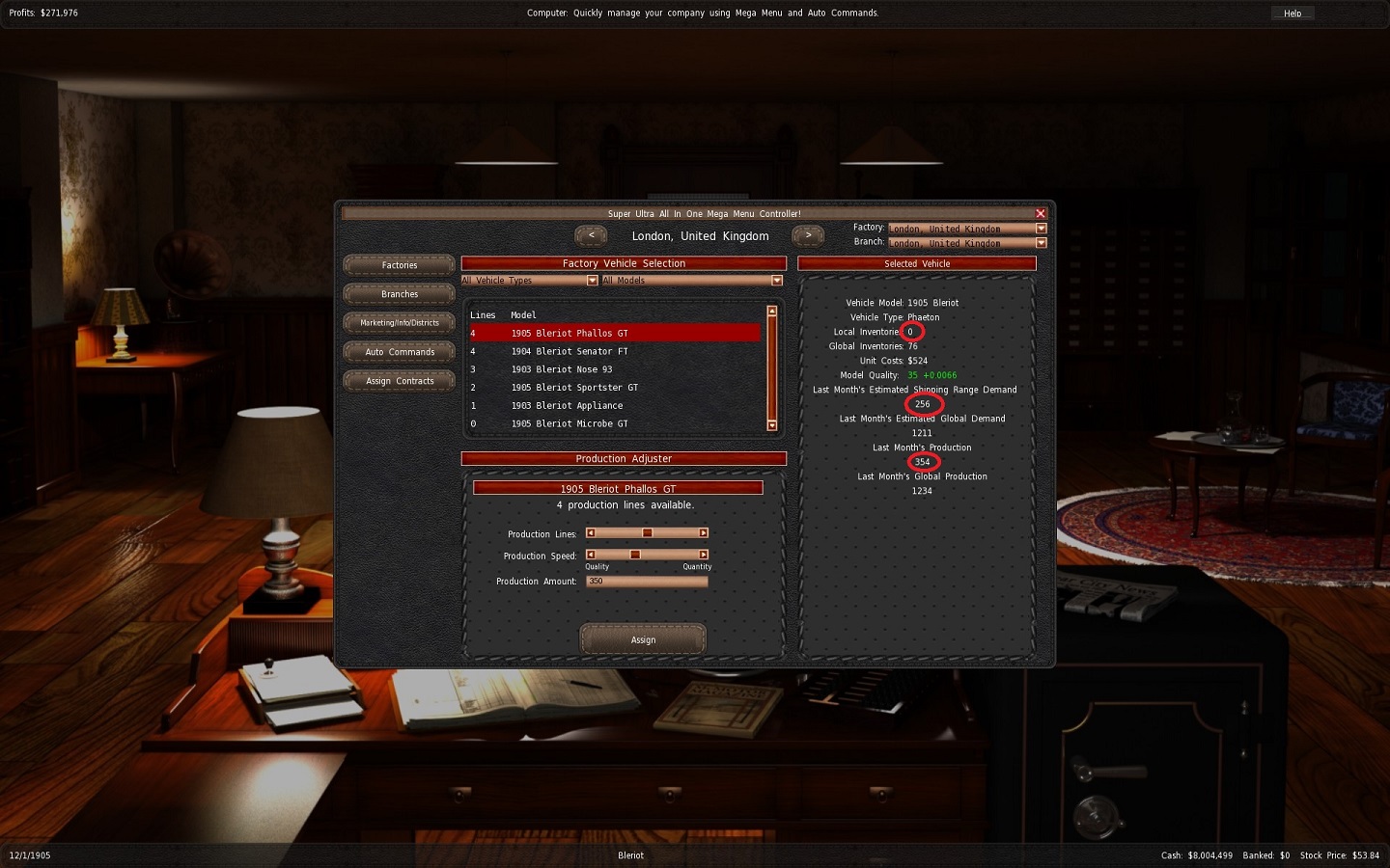 It does seem transportation costs are out of wack since it's showing $700 to ship from London to London. Goes back to what I said earlier about moving shipping to branches. That being said, the costs have always been accurate, people just didn't understand how they're calculated. (All the money you spend in a month)/(all the cars you build and have in inventory) + unit costs + estimated transport = amount of money you need to charge to break even if you sold every vehicle built and in inventory.