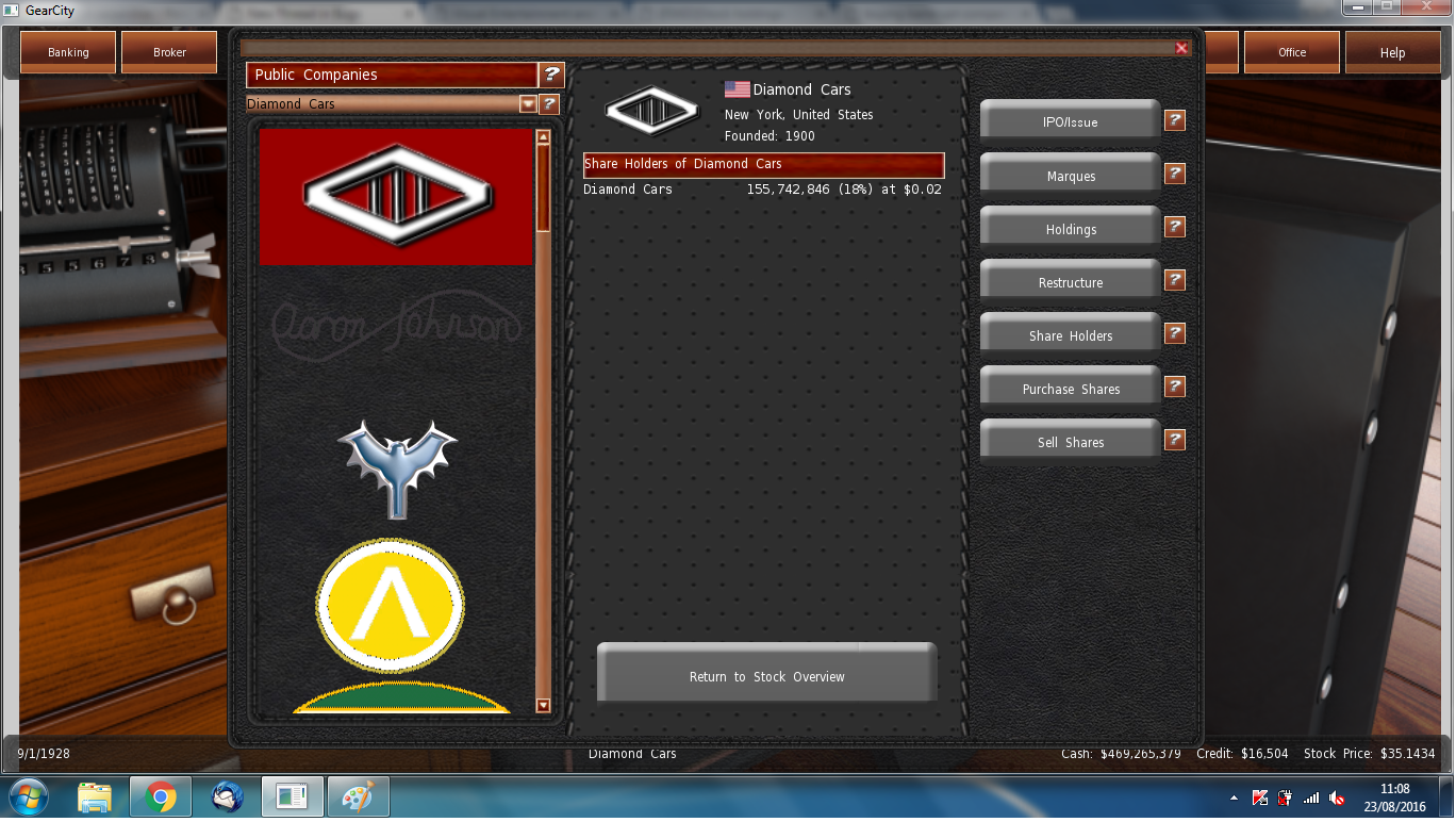 To finish, I saw on another thread from 1.19 that Stock Market Bug was FIXED for 1.20 but it's not. Even when I sell of the shares I own from a company, when I go back to the holdings panel, it stills shows me 3% of this, 9% of that etc... I am not sure this is the same problem than before as I keep buying companies, so maybe the owned this prior to the buy-out, but some companies always go back to this holdings panel as I own 0% of them (a few thousand shares usually)...