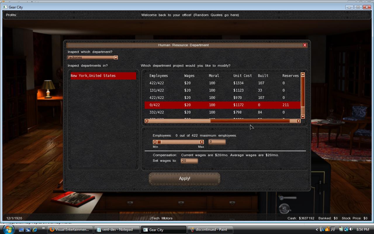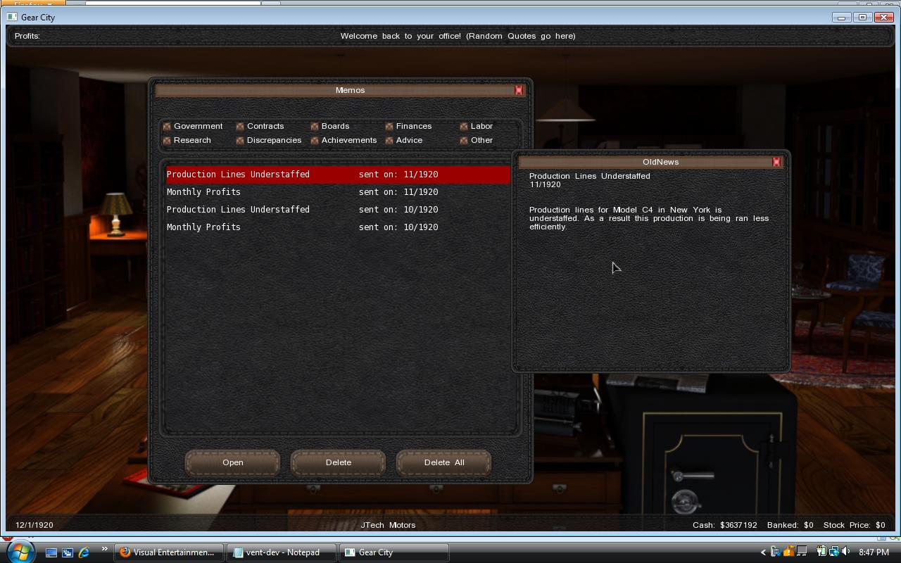 There is one issue that I only just noticed though. After discontinuing a model from the R&D office, I keep getting memos about understaffed production lines for that model. Granted, this did NOT happen when I discontinued an earlier model, so it might have something to do with the order in which I went about discontinuing it (can't remember exactly). Either way, if a model is discontinued, it shouldn't show up in the HR department or memos. Although it might have something to do with the fact that there are still leftover "reserves" in inventory. If that's the case, there should be a way to get rid of them (maybe scrap them entirely if no one wants to buy them)?