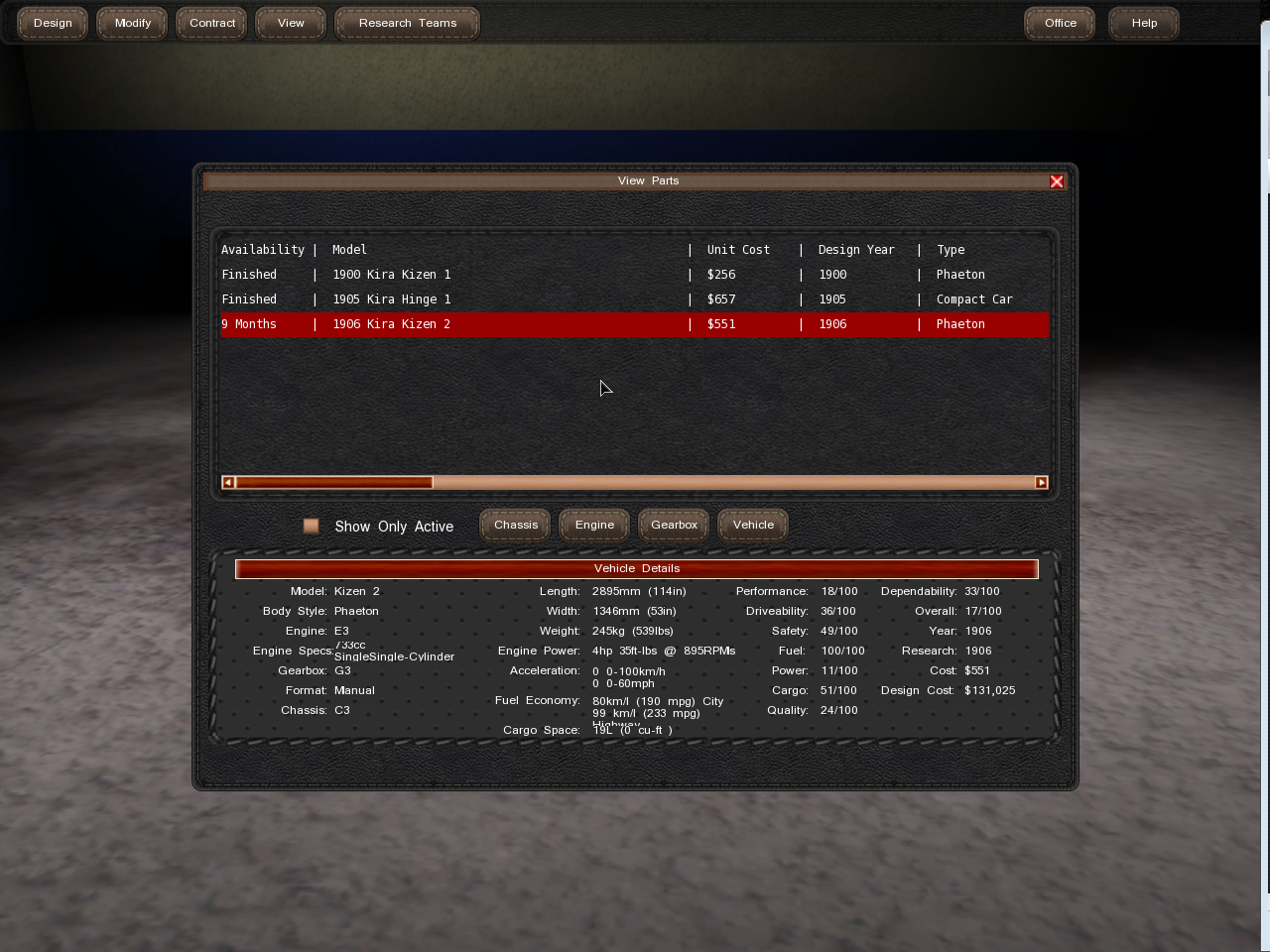 Most of this is because i spent far too much trying to make a nice Straight4 engine, which raised the price of the entire vehicle dramatically. With a Sales price of $900 i was selling about half as many of these as my phaetons in 1906. I sold about 8k units in 1906.