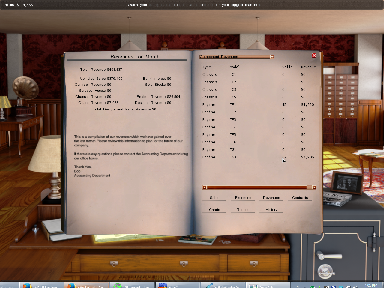 However, in my game interface, through the profits number in the top left, as well as through the overall cash figure, im clearly earning profits.