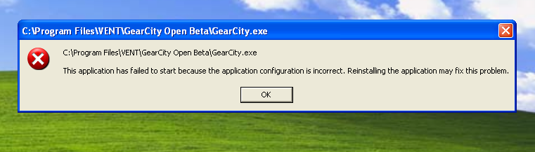 I've installed GearCity, yet it keeps telling me the application is configured incorrectly. I have installed all the extras, so can I have some help?