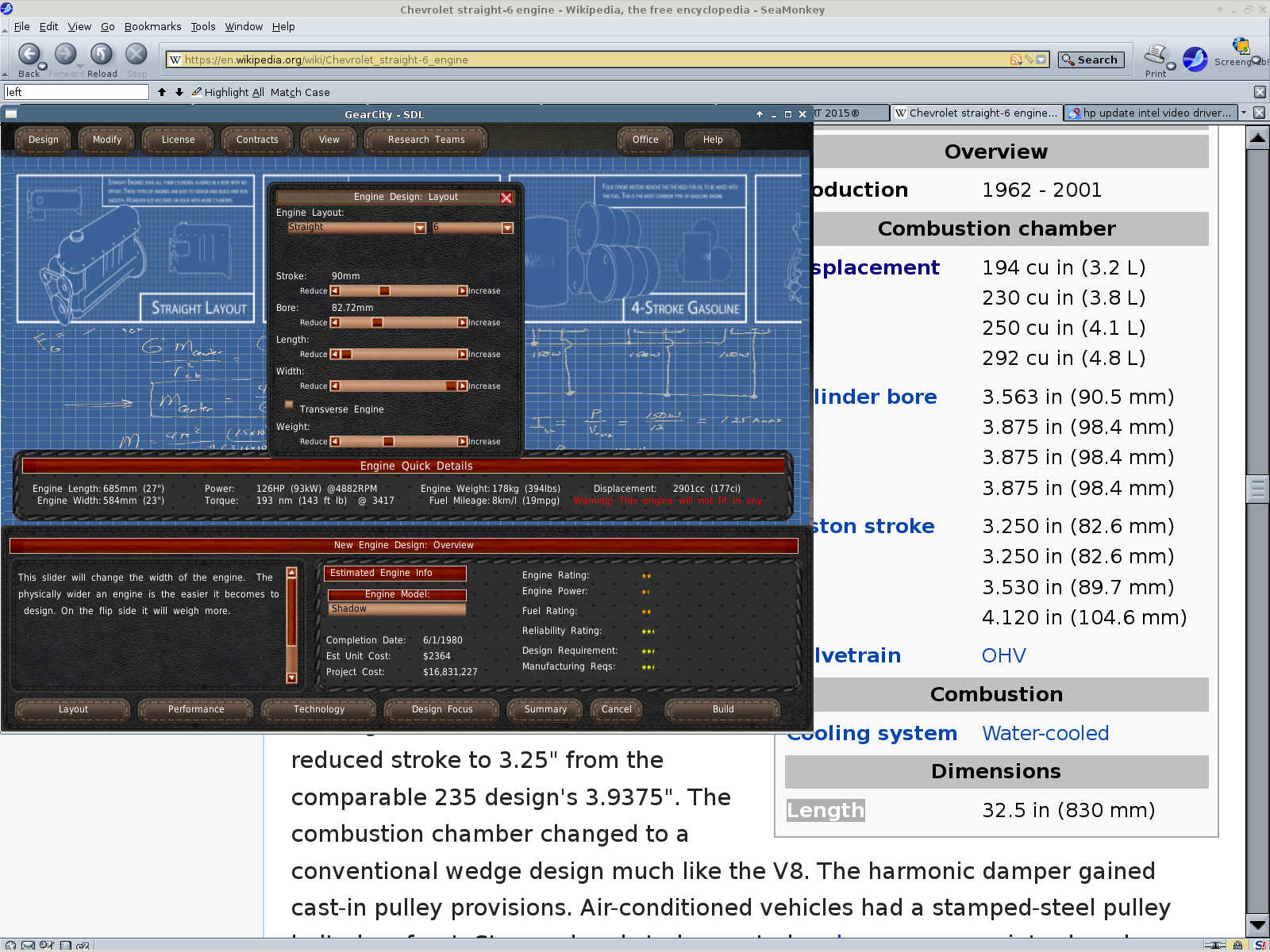 The bore and stoke are now used to calculate the minimum engine size, along with a few other factors. Now, the lengths and width sliders determine how much effort you've put into making the engine as small as you can for the displacement you've chosen.