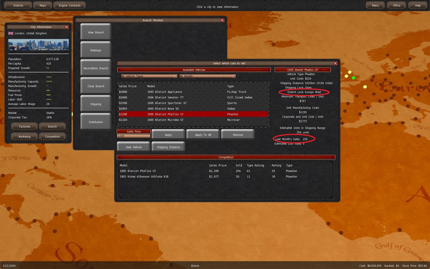 (07-12-2015, 07:19 AM)Eric.B Wrote: I don't think this is screwed up. Selecting the London branch shows the sales you made in London, 256 units. It also says that the shipping to London is locked to "Europe West". Which means you're only shipping from factories in "Europe West".
