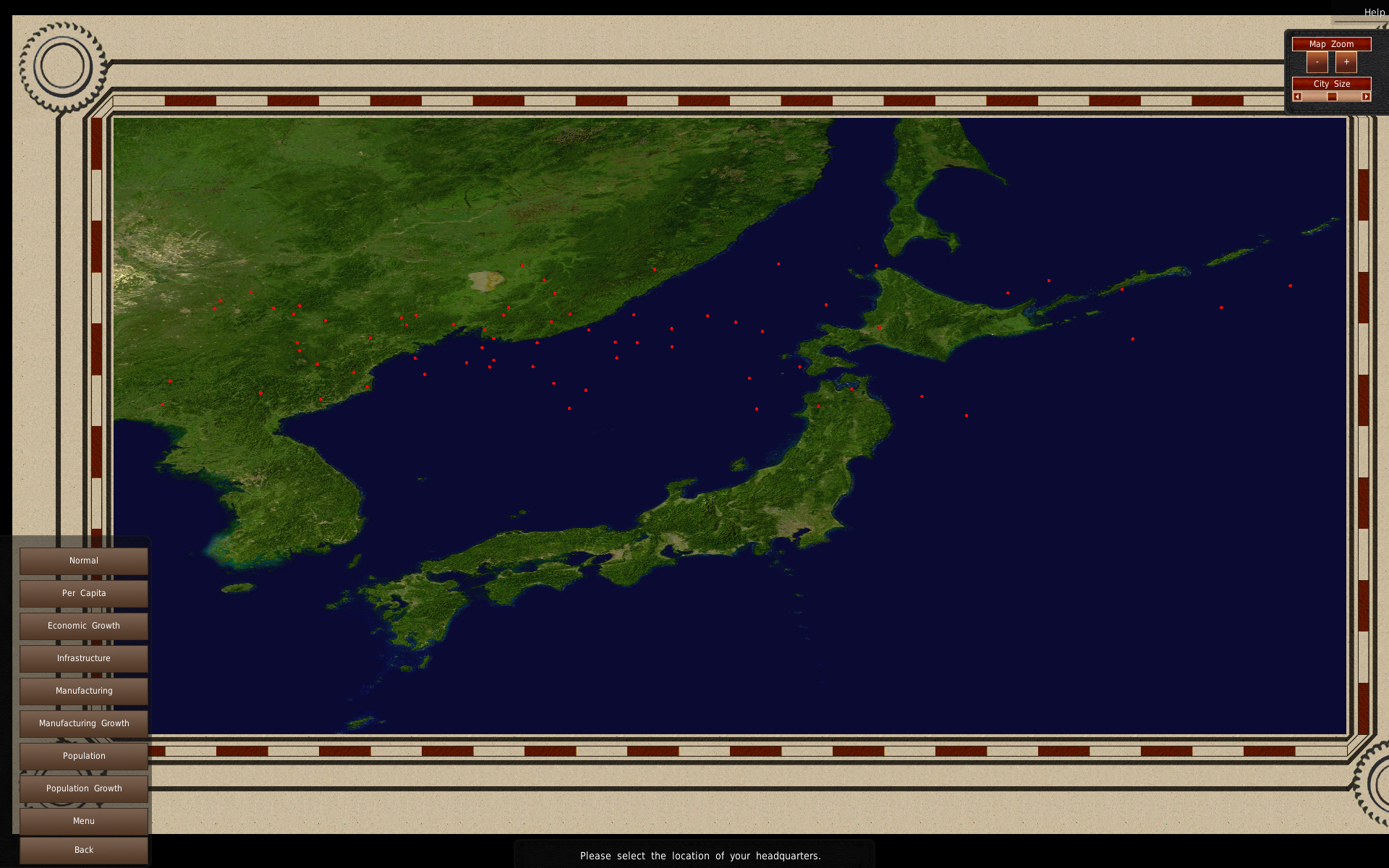Alternatively, the game does support 3d modeled maps. If you have those talents, you can do any type of map you want. Classic Map and both Territory maps are 3d modeled maps. The exported entry names for the city markers have to be the number corresponding to the city's ID. That and the lack of camera or model rotation is the only restrictions.