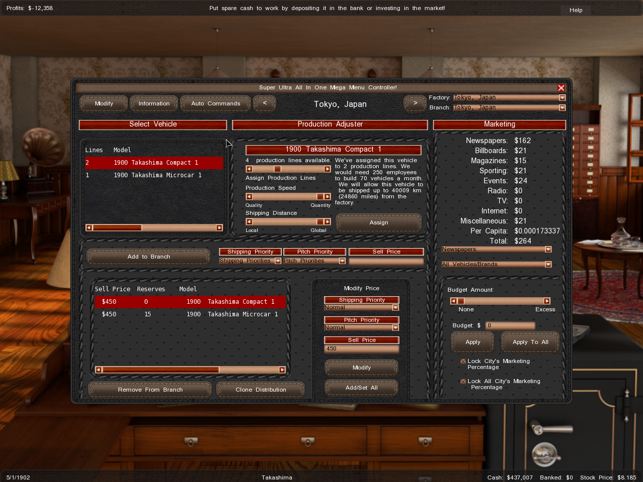 Notice that im apparently producing 70 vehicles and old sold 39 but have 0 in reserve.