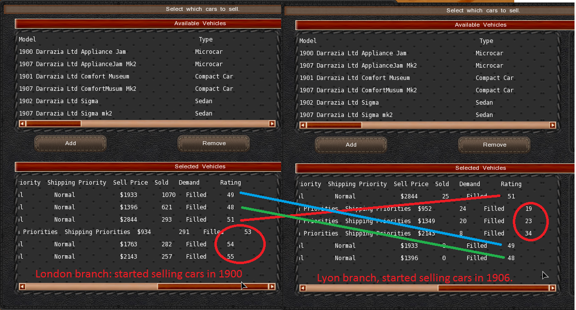 Onother issue: i messed up setting manual wages, so one of my branches went on strike (Paris, see screenshot). I rised their salaries. 3 turns later, strike is over. However, my branch is still not selling any cars (only 1). I have uploaded a screenshot and my save game. My solution is to close my branch, and rebuild it.